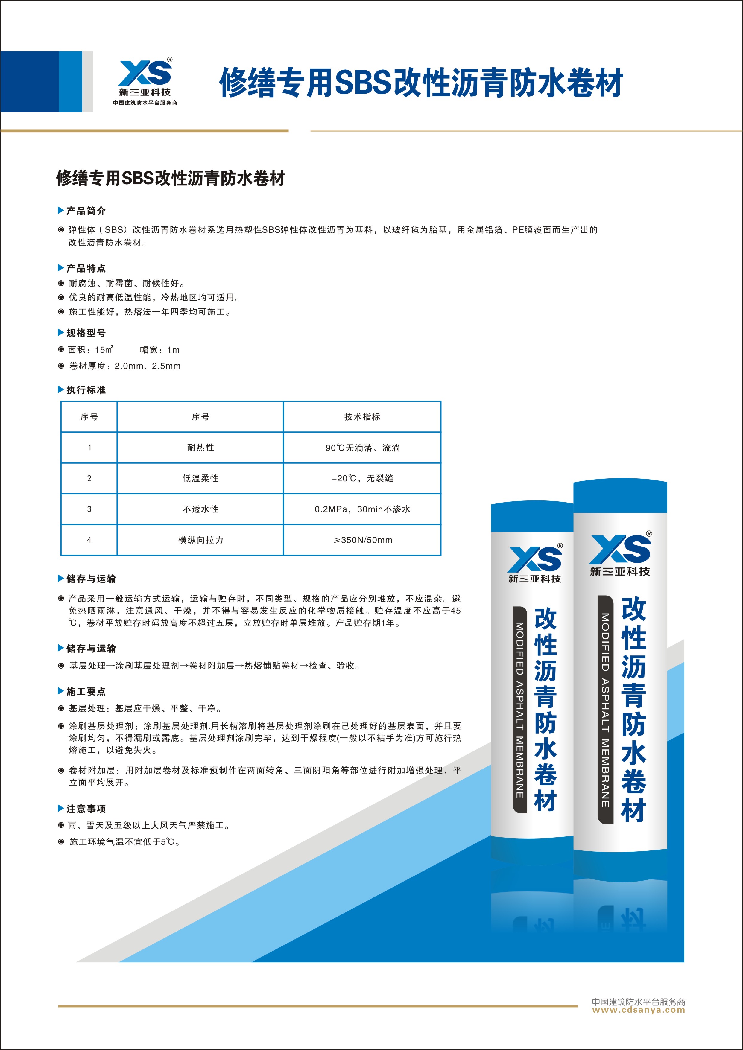產(chǎn)品特點(diǎn): 1.優(yōu)良的耐高溫性能。 2.可形成高強(qiáng)度防水層,抵抗水壓能力強(qiáng)。 3.耐腐蝕、霉菌、耐候性好。 4.施工性能好,熱熔法一年四季均可施工。 | ![]() |